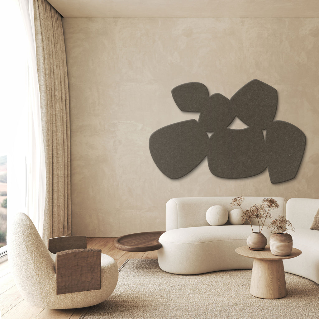 Our ACOUSTIC SCULPTURE collection brings together design and function in perfect harmony. The artworks are made from a PET felt panel that absorbs sound and helps create a pleasant, calm acoustic atmosphere in the room.