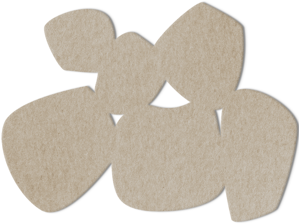 Who would have thought that something so beautiful could start as something as simple as a plastic bottle? The PET felt panels we use in our acoustic artworks are made from 100% recycled plastic – usually from bottles collected by you and me. Through a gentle process, waste is transformed into aesthetic beauty, and noise into calm. It’s not just sustainable – it feels right.