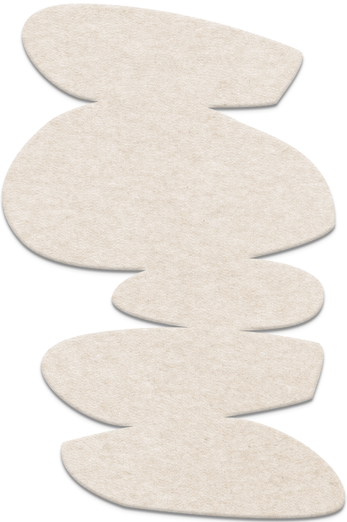 ACOUSTIC SCULPTURE is made from 100% recycled felt. The sculpture is mounted using an integrated felt panel on the back, which rests on two nails in the wall. This creates an elegant floating effect with approximately 1.8 cm distance from the wall, enhancing the sculpture’s form and depth. It is Danish design that creates balance between form, function, and feeling – bringing you art that creates calm.