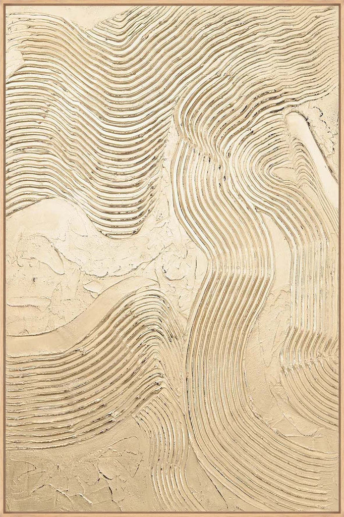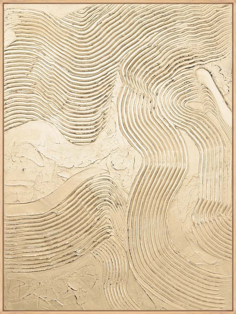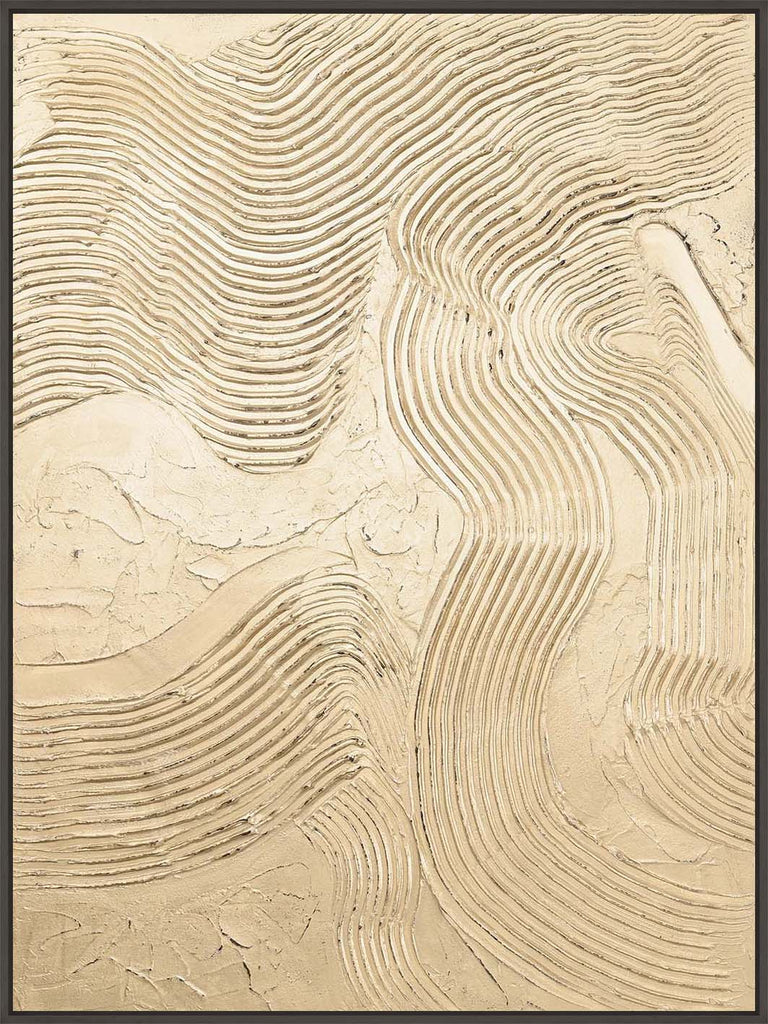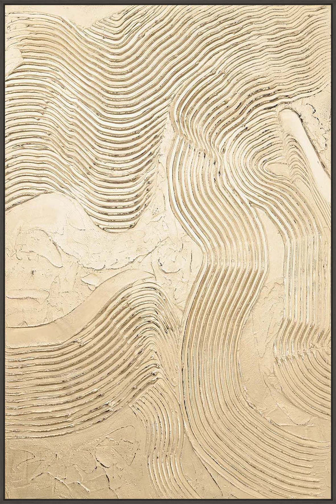 "Metallic Champagne" is an abstract piece with textured lines and a champagne-colored metallic surface that adds plenty of shine and elegance to any room.